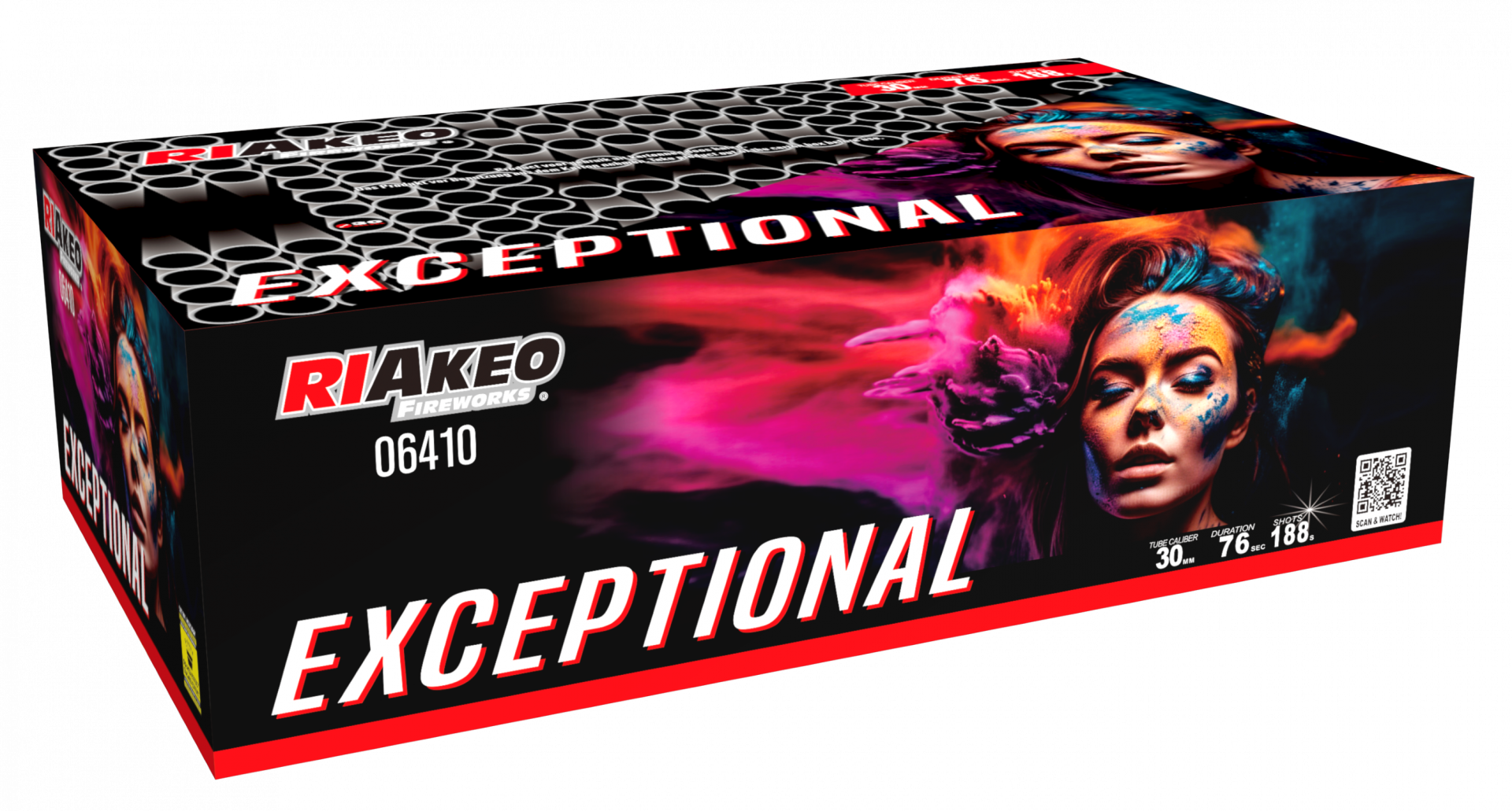 Exceptioneel in alle facetten. Kleuren zoals je nog niet eerder gezien hebt. Een dubbele compound met 30mm tubes en 188 schoten om je vingers bij af te likken. Ongekende kwaliteit, 2x2 kg ongetemde power komt los. Vuurwerk zoals je nog nooit gezien hebt, ongekend dikke waaiers wisselen de kleurrijke uptempo schoten af.
